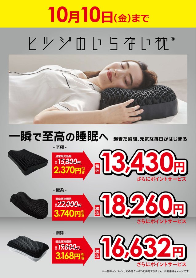 【10月10日(金)まで】 当社指定ヒツジのいらないシリーズが お買い得 ぜひ、極上の寝心地 ヒツジのいらない枕をご体感くださいませ。 6F寝具コーナーにて お試し頂けます #ヒツジのいらない枕