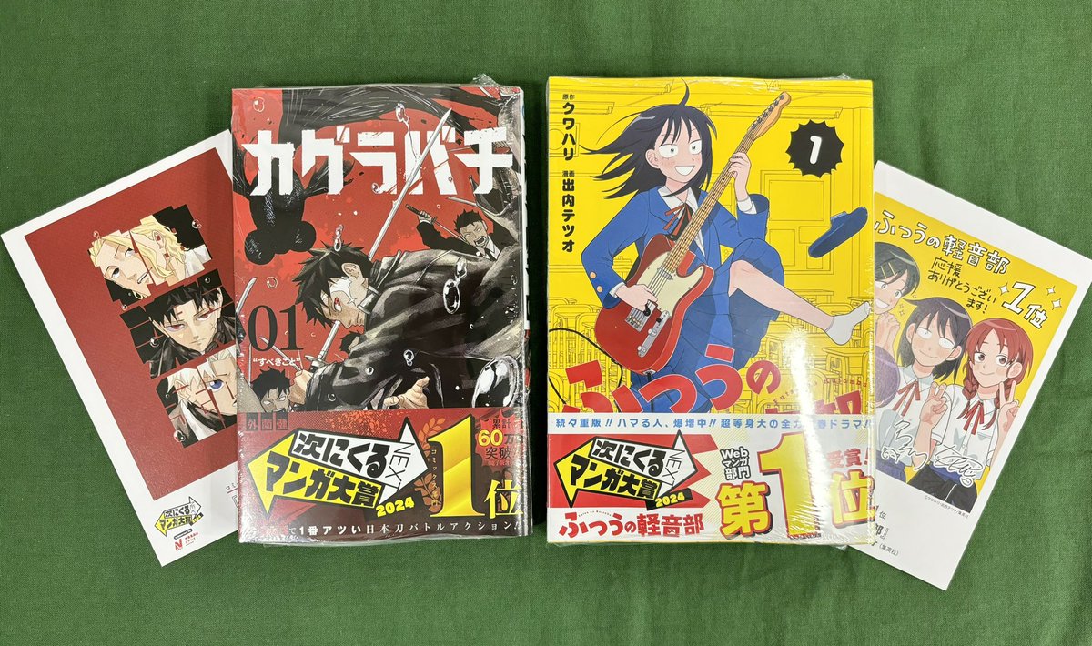 #次にくるマンガ大賞2024コミックス部門1位「カグラバチ」webマンガ部門1位「ふつうの軽音部」受賞記念特典ポストカードを配布中です!各コミックスご購入の方にお1人様1枚上限でお渡ししています先着順..