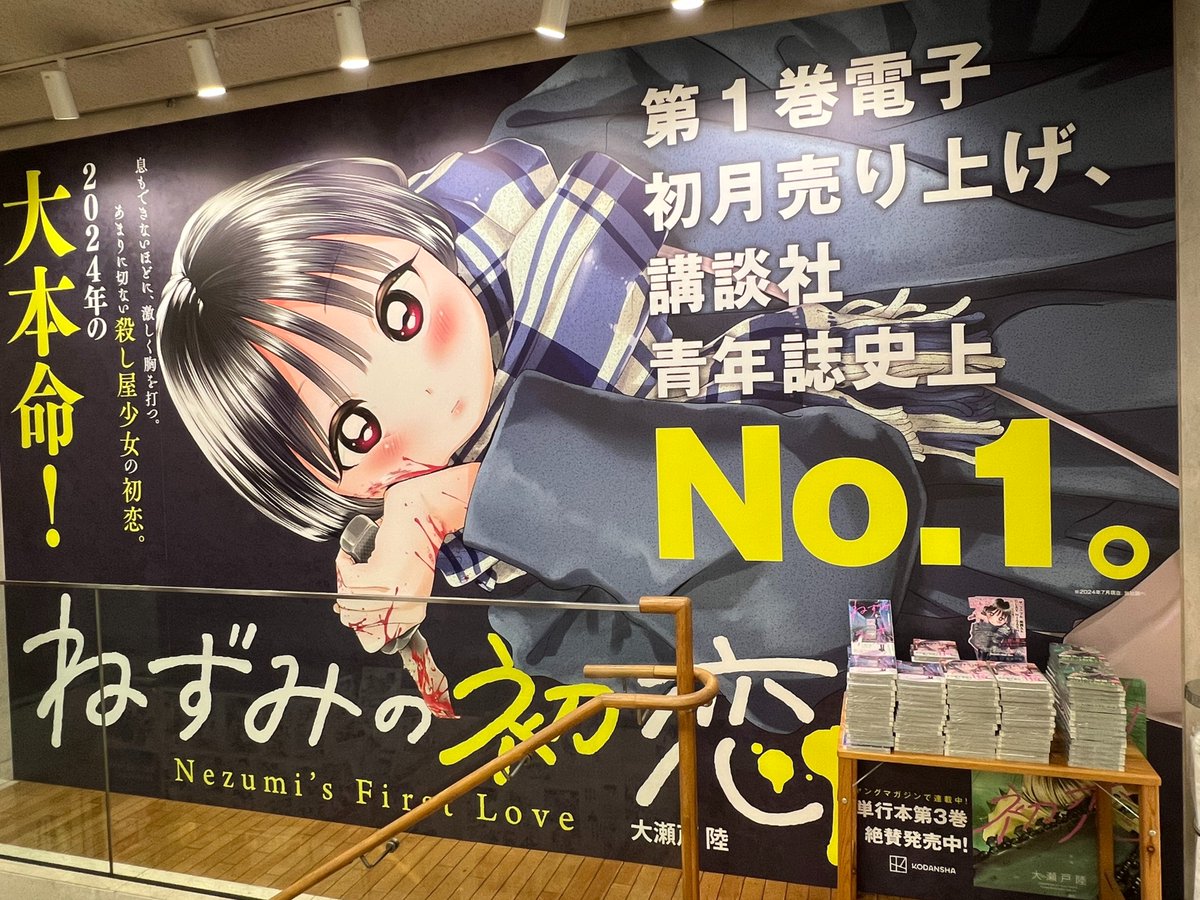 本日より1F巨大ポスターは『ねずみの初恋』です!ヤンマガ最推しウツピュアハードバイオレンス最新3巻5日に発売致しました~是非ご覧になってください!