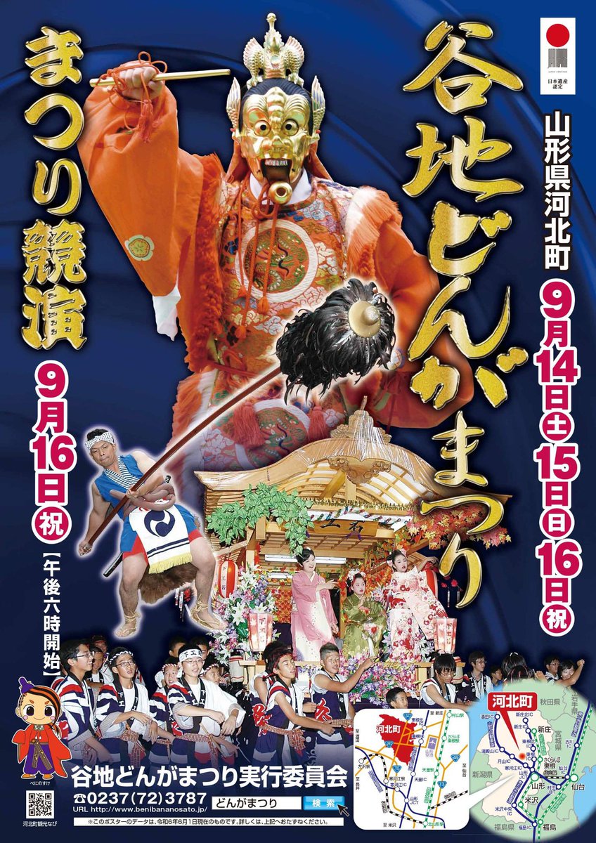 9/14〜16は、谷地どんがまつり開催!囃子屋台が町内一円を練り歩き、16日は、屋台巡演の終末を飾る提灯屋台・伝統行事競演パレード・競演が行われ、祭りのフィナーレを光の演出で飾ります「どんが」は太鼓の..