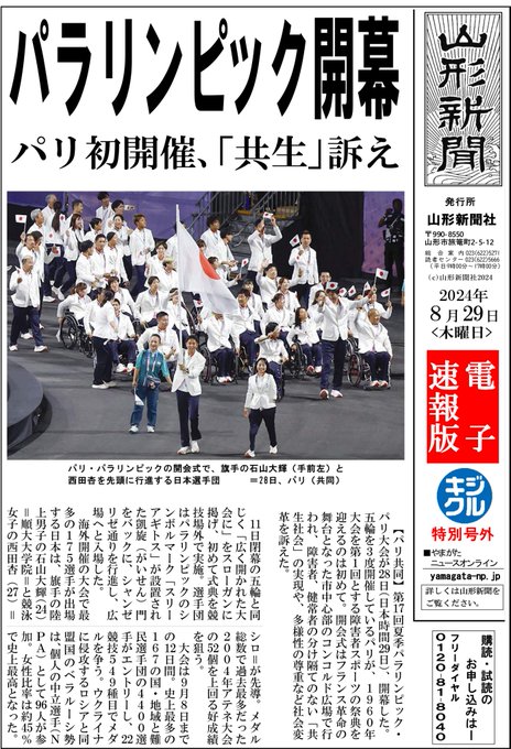 【電子速報版】パラリンピック開幕https://yamagata-np.jp/sokuho/