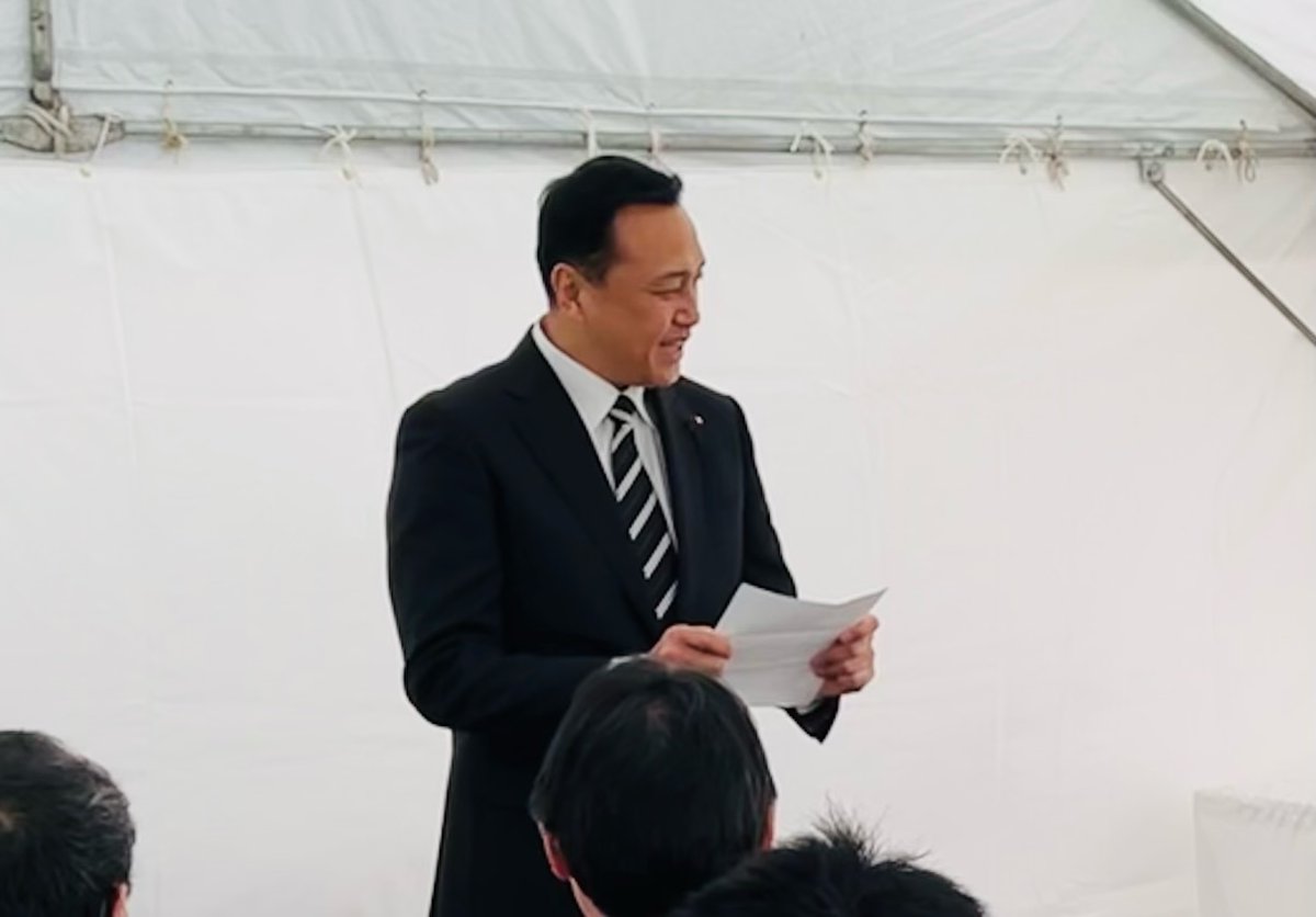 青葉区市が尾町に建設されるマンションの起工式にお招き頂き、鍬入れ、ご挨拶をさせて頂きました。安全な施工と地域の発展を願っています。