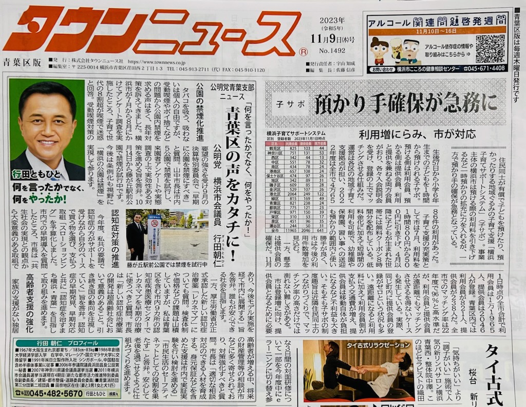 昨日発行されたタウンニュース青葉区版に市政報告を掲載。ご紹介します。<「何を言ったかでなく、何をやったか!」について6214>www.komei.or.jp/km/gyota/202..005