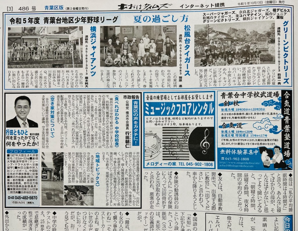 横浜市会第3回定例会が閉会。議論の結果をカタチにすべく取り組みます。毎月市政報告を掲載している「あおばタイムズ」の10月号が発刊されました。ご紹介します。 <あおばタイムズ 10月号について 6193>