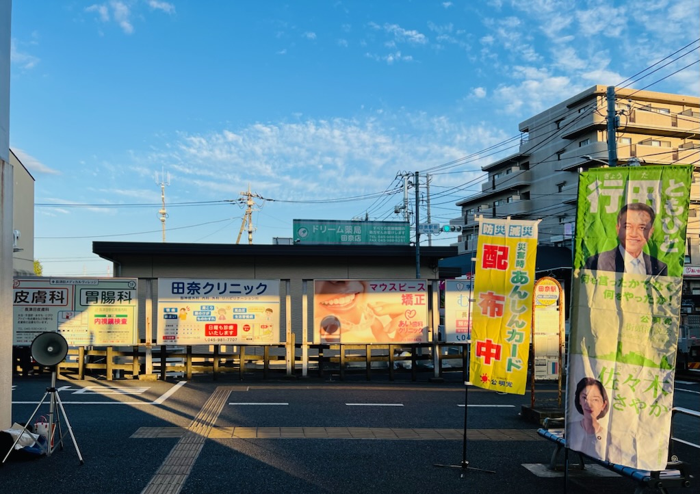 田奈駅前で街頭演説。ノーベル賞の発表が始まりました。受賞者の道のりは「異端視」されることもしばしば。一歩を踏み出す勇気の後に歴史はあります。 <「異端は異教より憎し」「異端は認められた瞬間、先端となる」 6177>