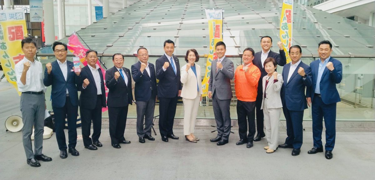 高知県での総裁遊説。 安全確保のため、聴衆の方々との距離を取らせて頂いています。