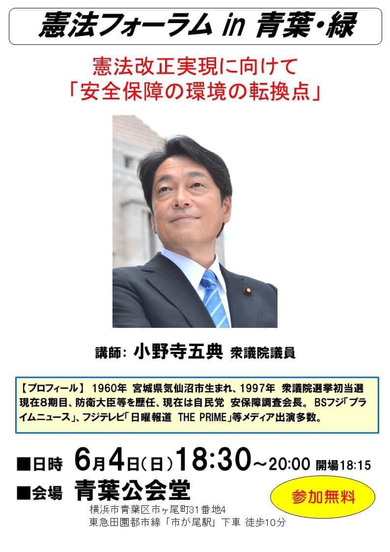 本日18時30分から青葉公会堂で憲法フォーラムを開催します。ご来場をお待ち申し上げます。#憲法フォーラム#青葉公会堂015
