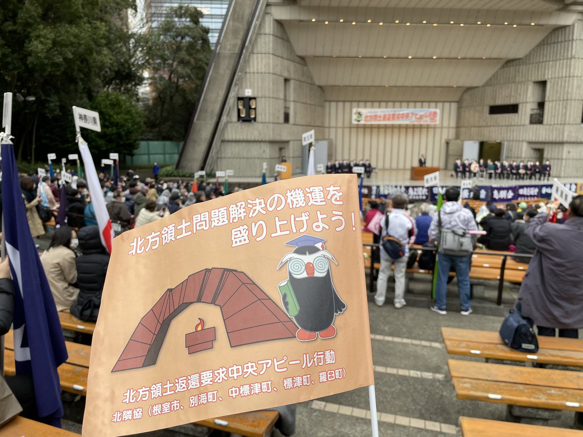 「北方領土返還中央アピール行動」が旧島民関係者、各都道府県民会議、青年団体、婦人団体、労働団体、教員団体など北方領土返還要求団体が参加して小雨が降る中、3年ぶりに行われ、参加しました。#北方領土#国後..