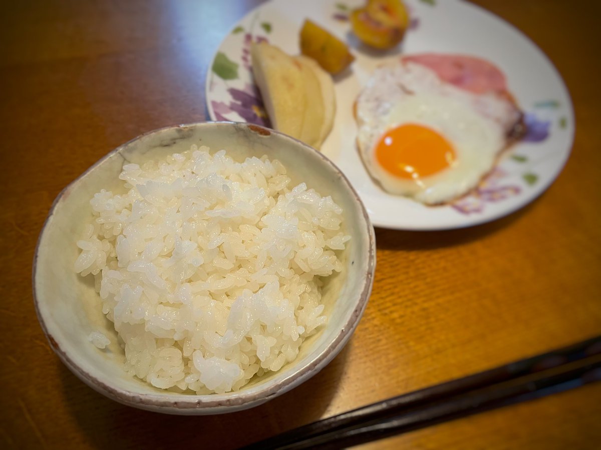 朝食は昨日、農協で買った新米🌾。ご飯だけで美味い。#横浜市#青葉区#JA横浜#ハマッコ直売所#四季菜館007