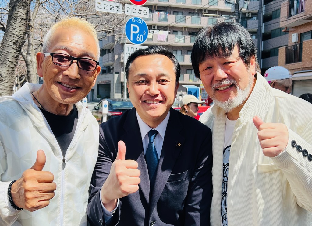アルファジャパンプロモーションのさくら祭り。荒井会長を中心に楽しい集まり。ビートきよし師匠の姿も。プロレスラー・サスケは挨拶代わりのプロレス技。今年はスリーパーホールド。魔よけの覆面レスラー。防犯に一..