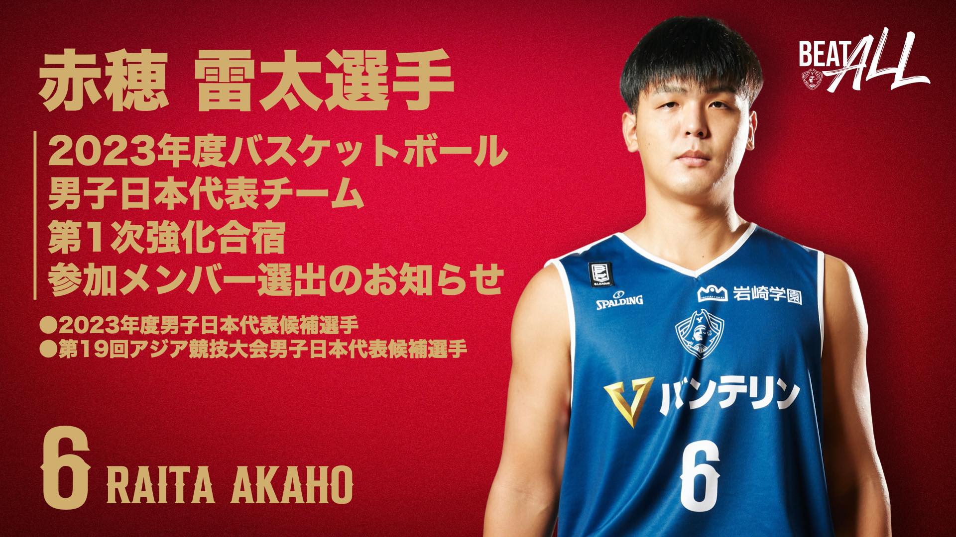 🇯🇵お知らせ🇯🇵このたび、#赤穂雷太選手が2023年度男子日本代表候補選手として、6月13日より行われるバスケットボール男子日本代表チーム第1次強化合宿の参加メンバーに選出されました。🔽詳細b-cor..
