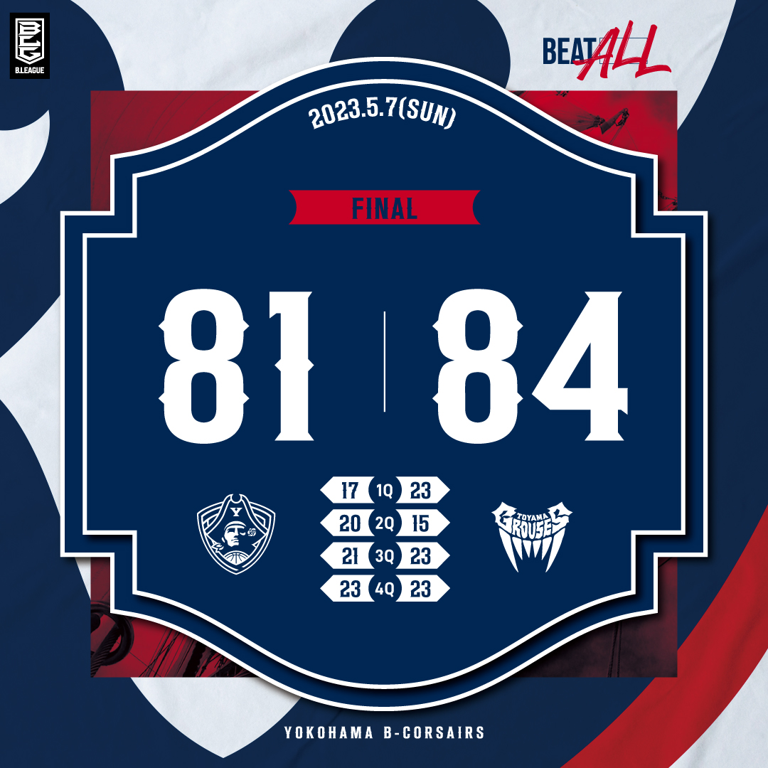 《2022−23SEASON第36節GAME2》試合終了横浜BC17 20 21 23|81富 山23 15 23 23|84⚓️BOXSCORE⚓️www.bleague.jp/game_detai..