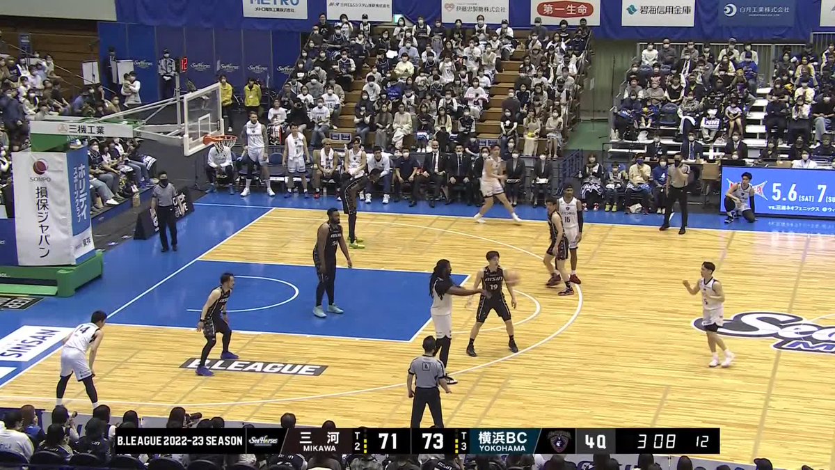 4Q終了 三河 83-78 横浜BC 中盤に逆転に成功するも以降は一進一退の攻防に。 終盤に三河にリードを許し、ファウルゲームで追いかけるも一歩及ばず敗戦。 応援ありがとうございました。 #バスケットLIVE で配信中📡 #ビーコル #Bリーグ