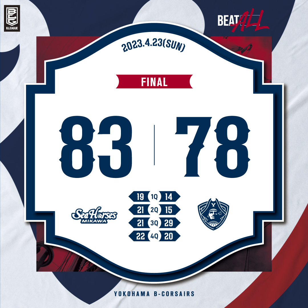 《2022−23 SEASON 第34節 GAME2》 試合終了 三 河 19 21 21 22|83 横浜BC 14 15 29 20|78 ⚓️BOX SCORE⚓️ #ビーコル #Bリーグ