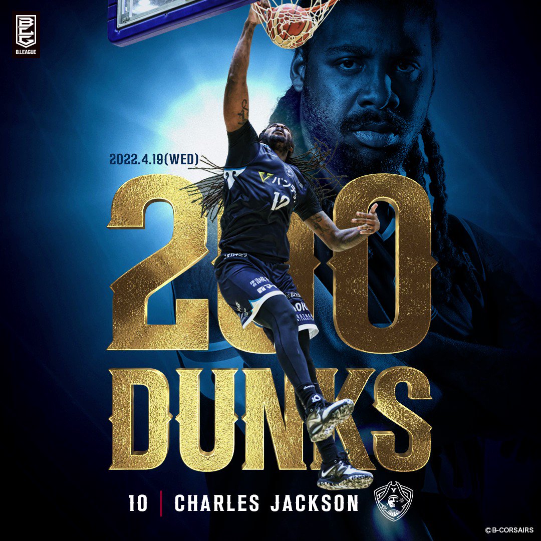 💫記録達成のお知らせ💫4/19(水)新潟戦で#チャールズ・ジャクソン選手が#Bリーグ個人通算200ダンクを達成しました🎉🎉🎉豪快なダンクでチームに勢いをもたらすCJ🔥今後の更なる活躍にもご注目ください..