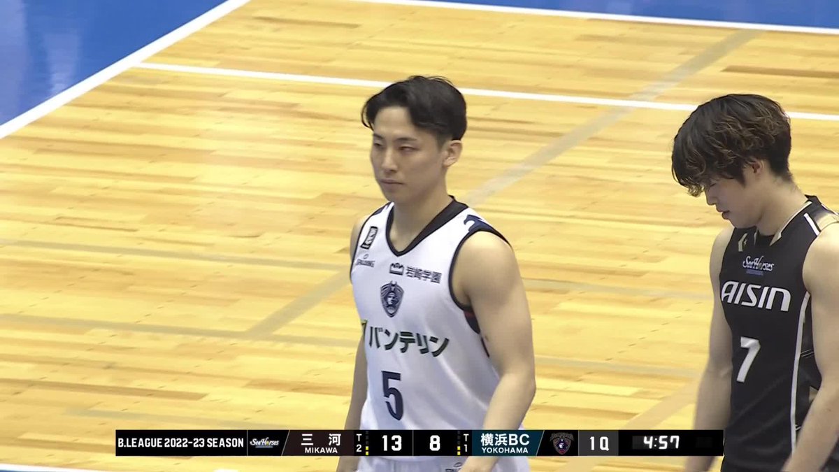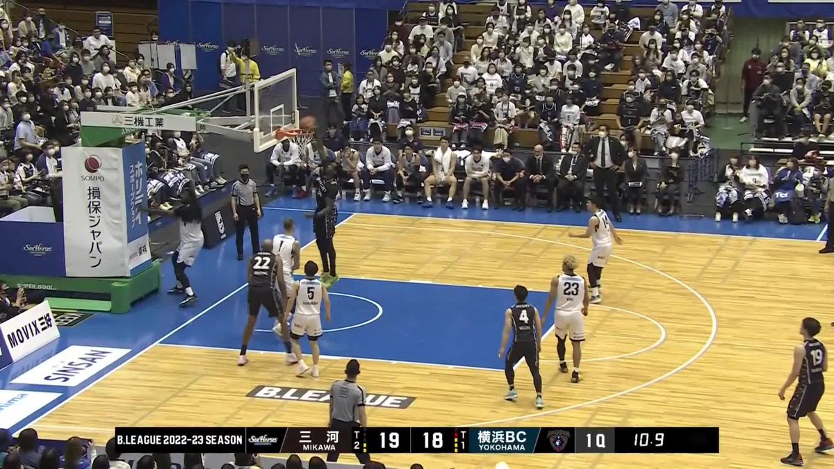 1Q終了三河21-21横浜BC三河ペースで試合が進むが、ディフェンスで相手のミスを誘い、8試合ぶりにコートに戻った#河村勇輝の得点で逆転に成功。再度逆転を許すも終了間際に河村が3Pシュートを沈めて同点..