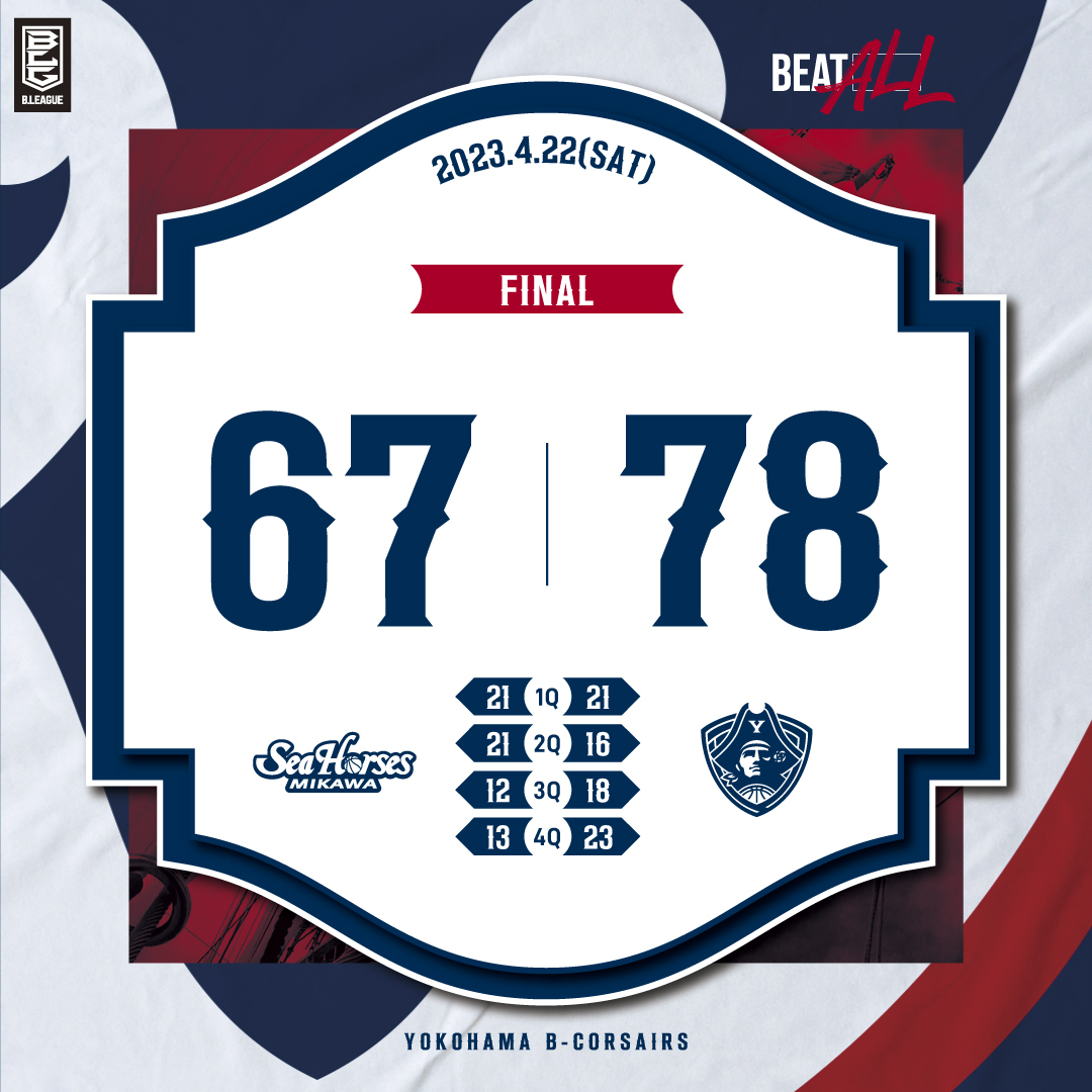 《2022−23 SEASON 第34節 GAME1》 試合終了 三 河 21 21 12 13|67 横浜BC 21 16 18 23|78 ⚓️BOX SCORE⚓️ #ビーコル #Bリーグ