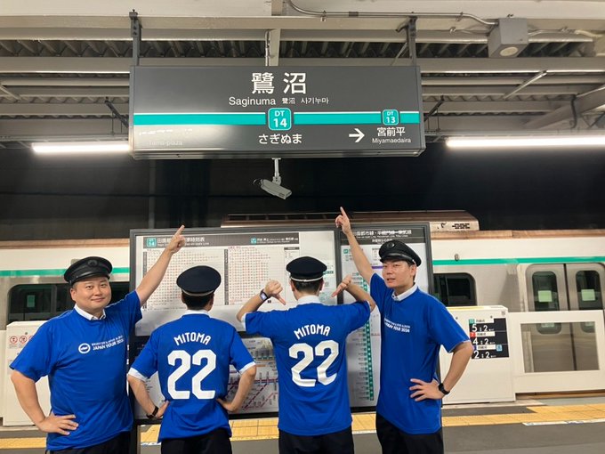¸¸✧・゚•.鷺沼の誇り+:。:✧ゆかりある東急線沿線から「ブライトン&ホーヴ・アルビオン・ジャパンツアー2024」を応援します鷺沼駅&溝の口駅両管内の駅係員も、ツアーTシャツを着て一緒に盛り上げてま..