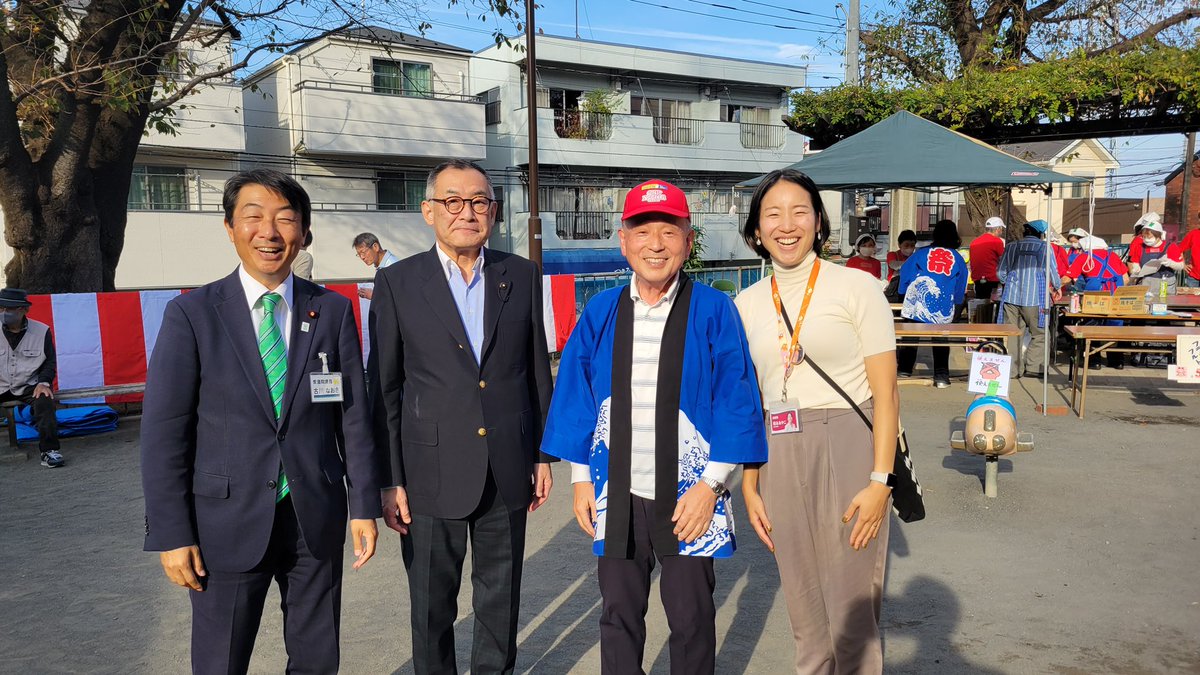 秋晴れと気持ちのいい風🍀地元議員の小野寺先生、衆議院議員の古川先生とご一緒させてあだき、会長とパシャリ!地元希望ヶ丘のふじみ会のお祭り、楽しませていただきました☺️#横浜市#旭区#希望ヶ丘#まっすぐ増..