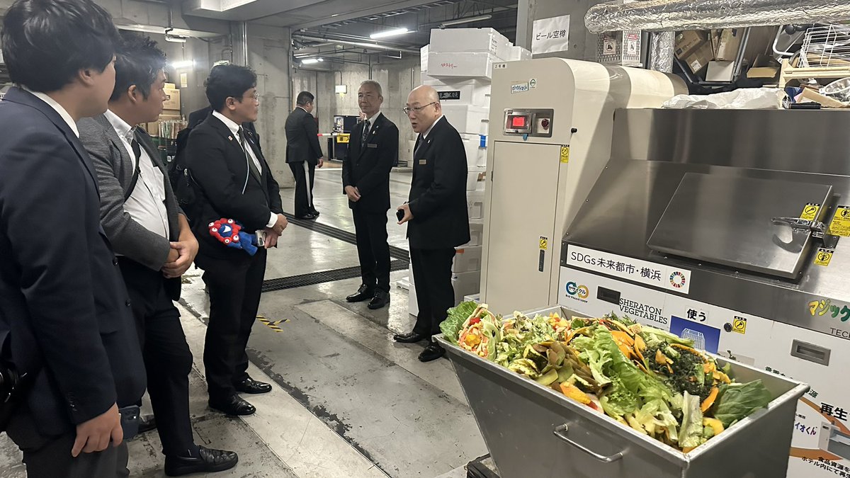 今日は自由民主党政令指定都市議員団でベイシェラトンを視察。自立循環型食品リサイクルループ「ヤサイクル」を通した地産地消への取組み。生ごみ処理機で資源化した堆肥を農家に提供し、そこで育てた野菜を再度食材..