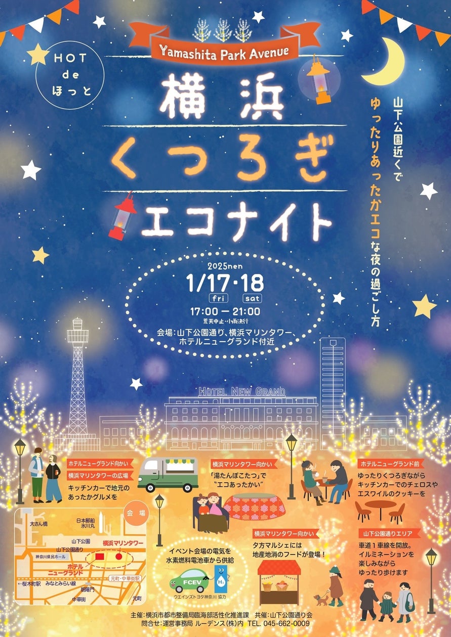 横浜市のプレスリリース(2025年1月9日11時00分)山下公園通り周辺で地元グルメやコタツを満喫するゆったりくつろぎイベント「横浜くつろぎエコナイト~YamashitaParkAvenue~」を開催..