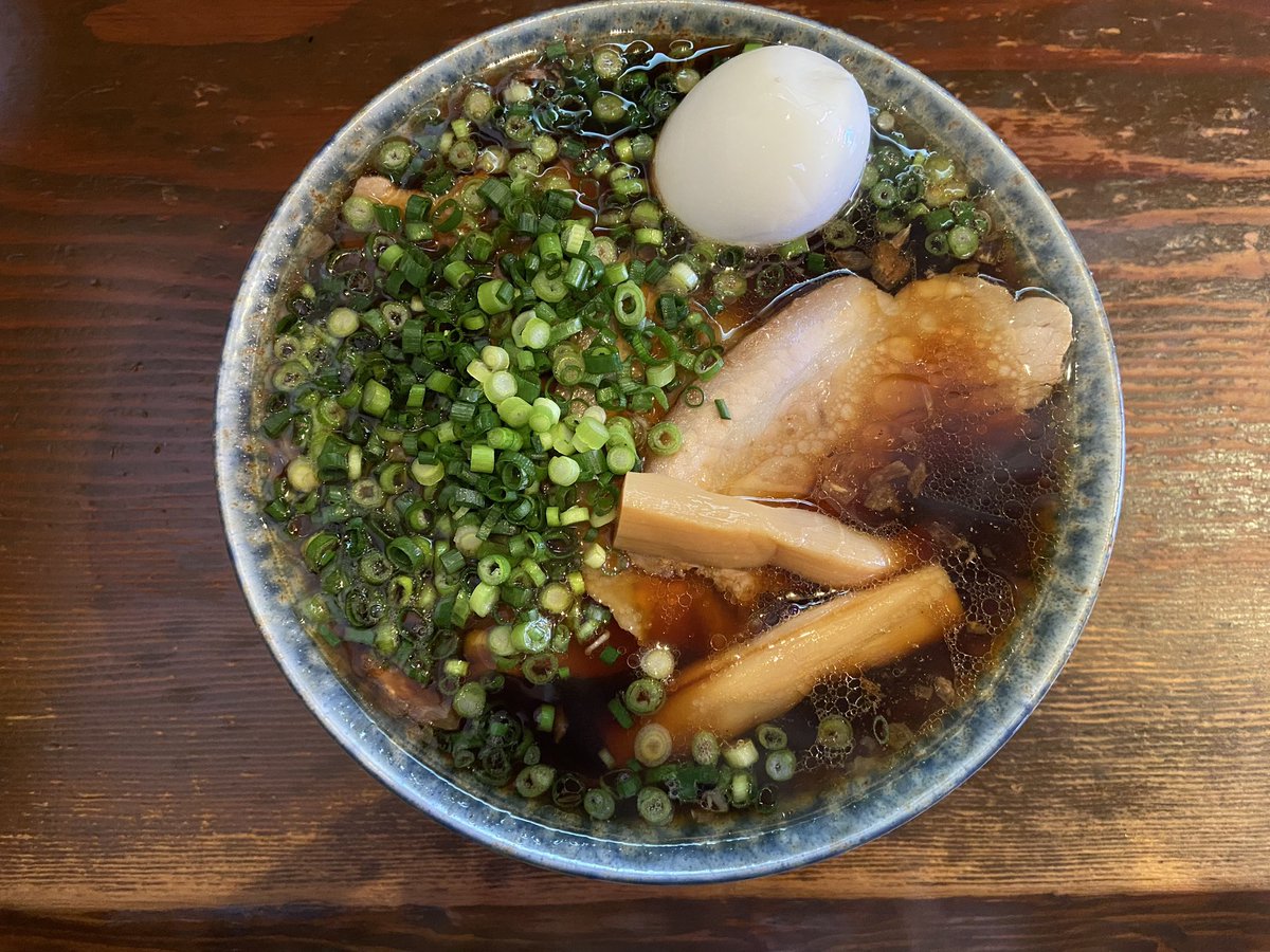 ラーメン探訪『古式ラーメン鶴亀』大倉山熟成しょうゆラーメン・チャーシュー・青ねぎ動物系に野菜等の和出汁の様なスープ、コクのある濃い目の醤油に生姜と揚げ葱の風味が芳ばしい🤣👌サービス茹で卵👍バラ叉焼にメ..
