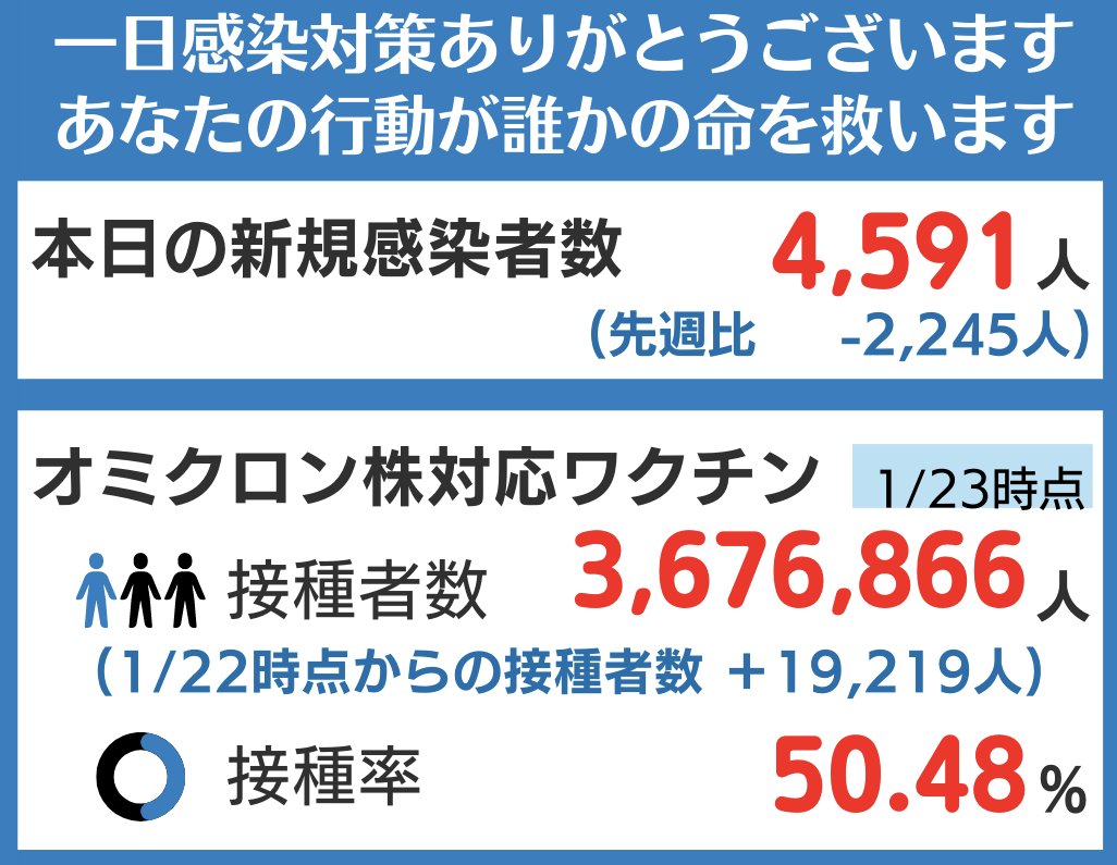 新規感染者数は減少傾向にありますが、引続き感染防止に努めましょう。#抗原検査キットや、薬・食料品などを常備しておくと安心です。また、キットで陽性の場合、重症化リスクの低い65歳未満の方は、スマホなどで..