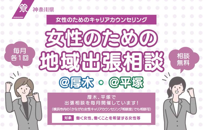 【女性のための地域出張相談@厚木】「働き始めたい」「再就職したい」「転職したい」と考えている女性のために、女性キャリアカウンセラーが厚木に出張して相談をお受けします。第8回(厚木会場):令和7年11月..