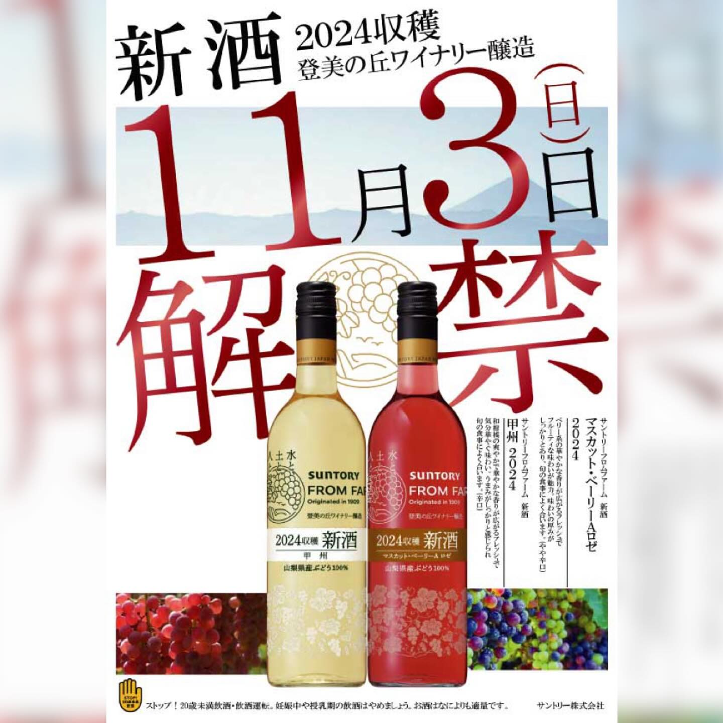 11月3日山梨ヌーヴォー解禁‼︎そして11月21日はボジョレーヌーヴォー解禁です🎉今年も楽しみですね♪今年はボジョレーヌーヴォー以外にも、甲州/マスカットベリーAロゼも仕入れました!数が少ない為なくな..
