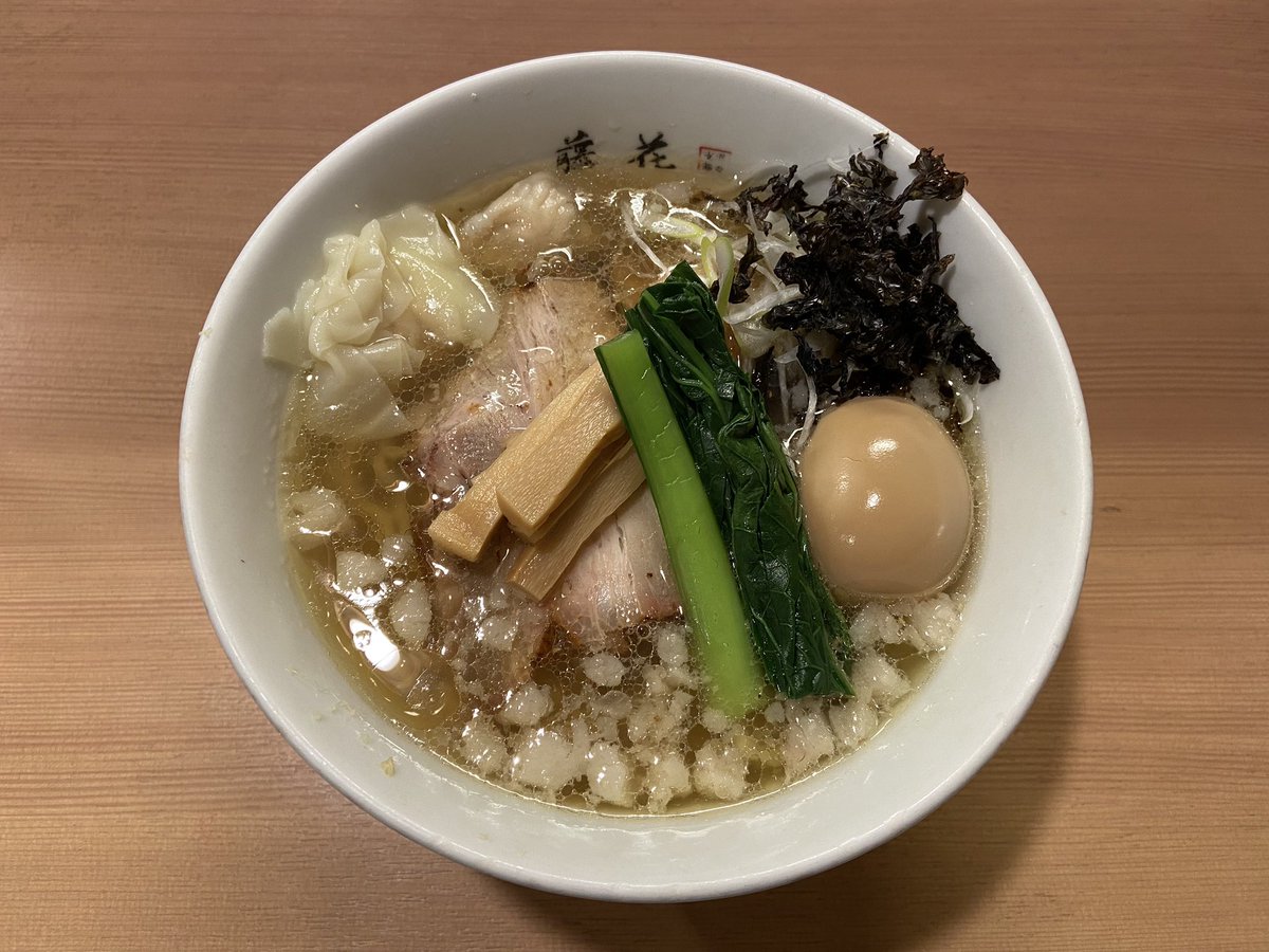 ラーメン探訪『支那蕎麦屋藤花』鴨居冬季限定 特製塩生姜らぁ麺透き通る程美しい清湯スープ、生姜の発汗作用と背脂のコクが絶妙なバランス🤣👌コリコリメンマが超旨し⚡️👍軟骨入り雲呑の食感が堪らん💯💯💯手もみ..