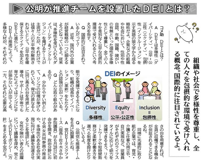 (コメ助のここが知りたい!)公明が推進チームを設置したDEIとは?#公明新聞電子版2024年07月15日付https://komei.or.jp/newspaper-app/