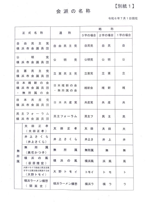 【市会運営委員会】次回の議会から新たな会派編成となります。会派と無所属の数が6と6で同じになります。#横浜市会#横浜市会議員