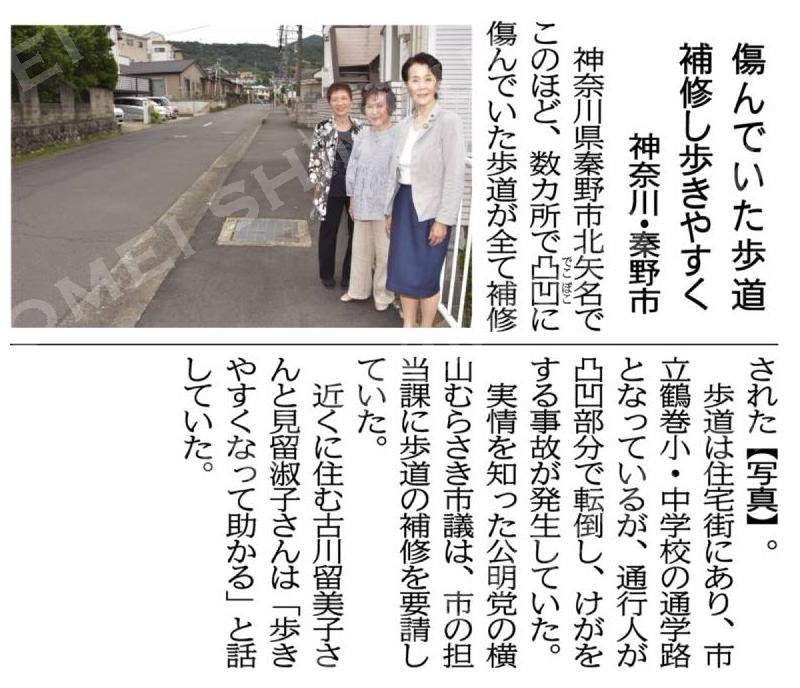 傷んでいた歩道を補修し歩きやすく/神奈川・秦野市#公明新聞電子版2024年08月06日付https://komei.or.jp/newspaper-app/