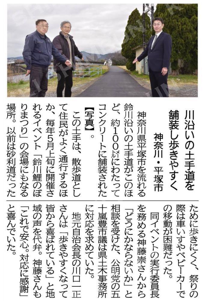 川沿いの土手道を舗装し歩きやすく/神奈川・平塚市 #公明新聞電子版 2024年03月29日付