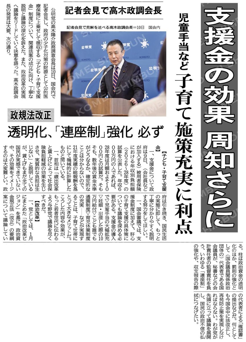 支援金の効果、周知さらに/児童手当など子育て施策充実に利点/記者会見で高木政調会長#公明新聞電子版2024年04月11日付www.komei.or.jp/newspaper-app/022