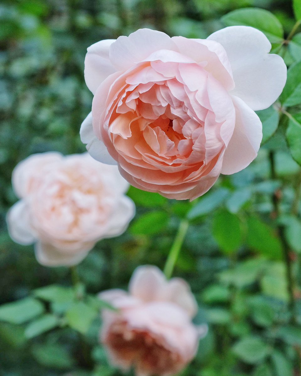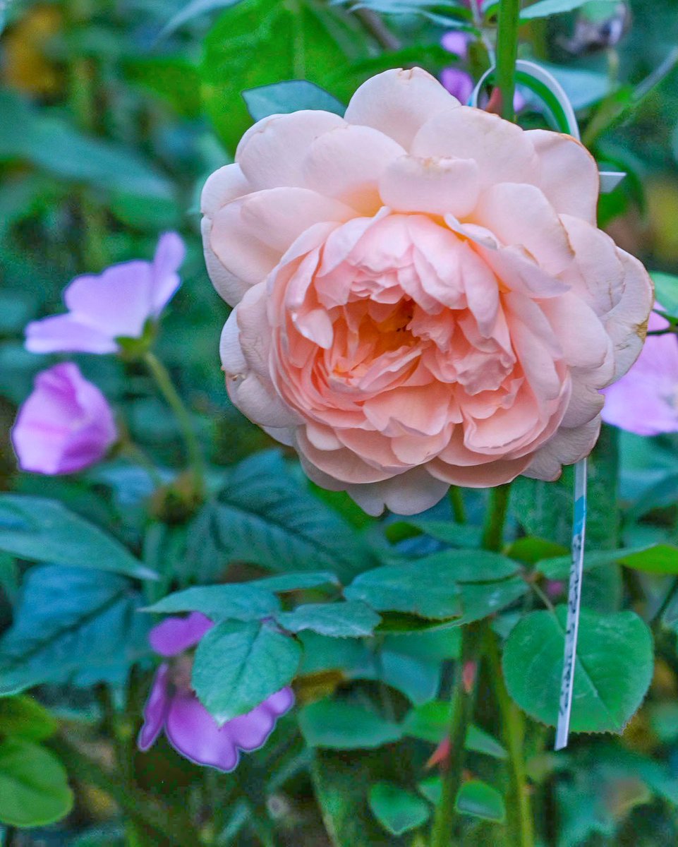 【本日の秋バラ】アンブリッジ・ローズアプリコット・ピンクの中輪ロゼット咲きで、秋はカップ状になります。花には強いアニスの香りがあります。数輪の房で咲き、花付きがとてもよいです。0977