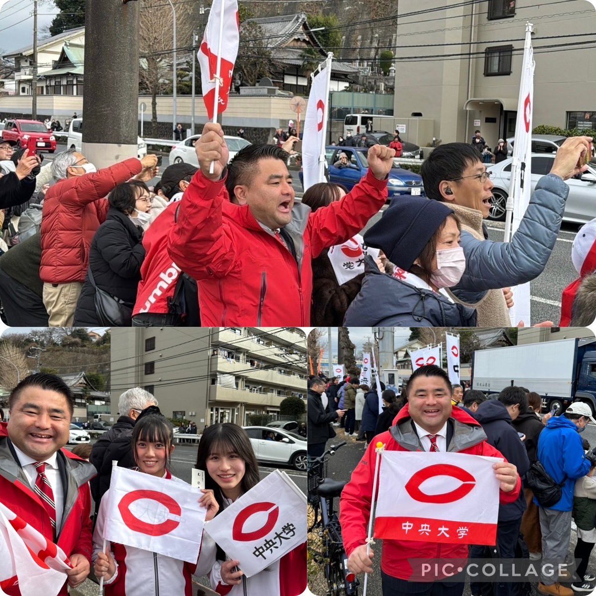 箱根駅伝!横浜白門会の皆さんと一緒に、保土ヶ谷駅近くの沿道から母校・中央大学の応援です。結果は5位でしたが、選手の皆さん本当にお疲れ様でした。