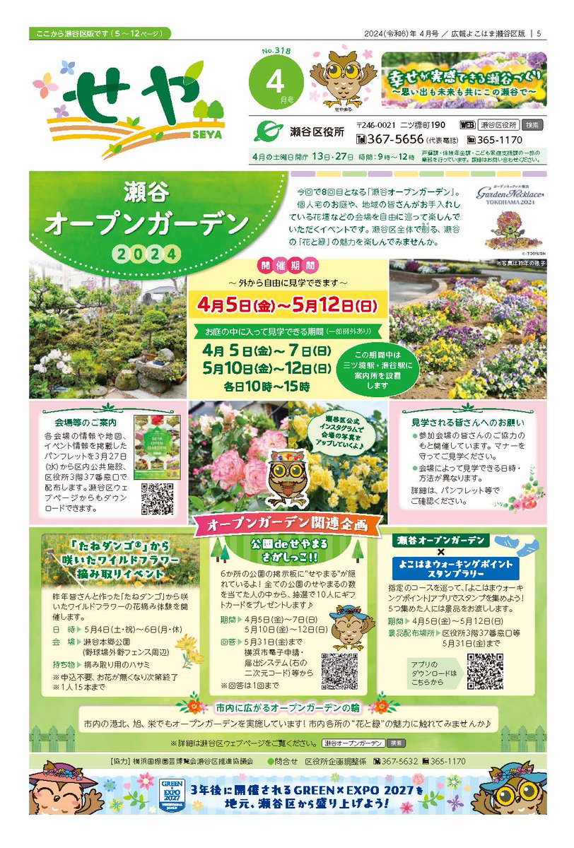 【広報よこはま瀬谷区版4月号公開!】 トピックス☛瀬谷オープンガーデン2024 特集☛令和6年度瀬谷区で行う主な事業 瀬谷区ウェブページでも公開しています✨ぜひご一読ください! #seya #瀬谷