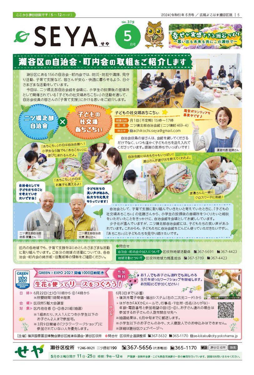 【広報よこはま瀬谷区版5月号公開!】表紙▶瀬谷区の自治会・町内会の取組をご紹介します特集1▶こんにちは!民生委員・児童委員です特集2▶「お悔やみ窓口」を開設しています瀬谷区ウェブページでも公開していま..
