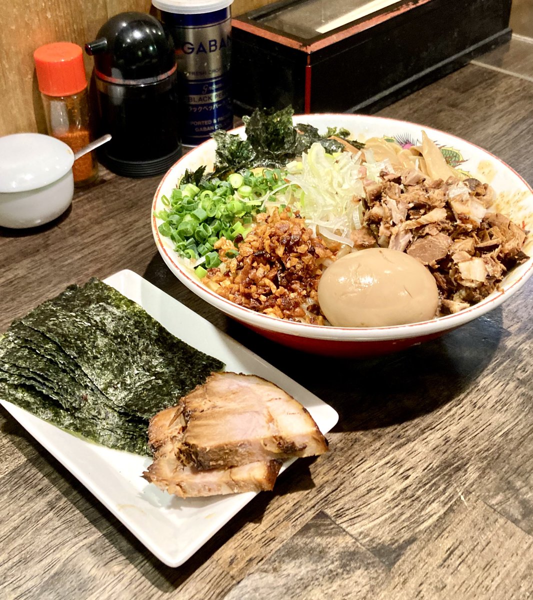 つけ麺中華そば吉田食堂-鶴見 特製辛い油そば980円 入れ放題のタマネギをTPしたら🤩😍🤩😍熱々🔥のうちに素早く麺とタレと具材をまぜ💫まぜ💫まぜ💫モッチモチの麺🍜に絡んで圧倒的なジャンク感😎✨丁度いい..