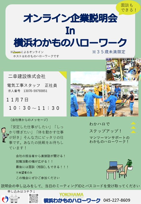会社の方から直接話が聞けるチャンス#横浜#わかもの#ハローワークでは#オンラインによる#会社説明会を実施します最後には質問や#相談#面談もできる!!お申し込みやもう少し詳しくはコチラのHPから!htt..
