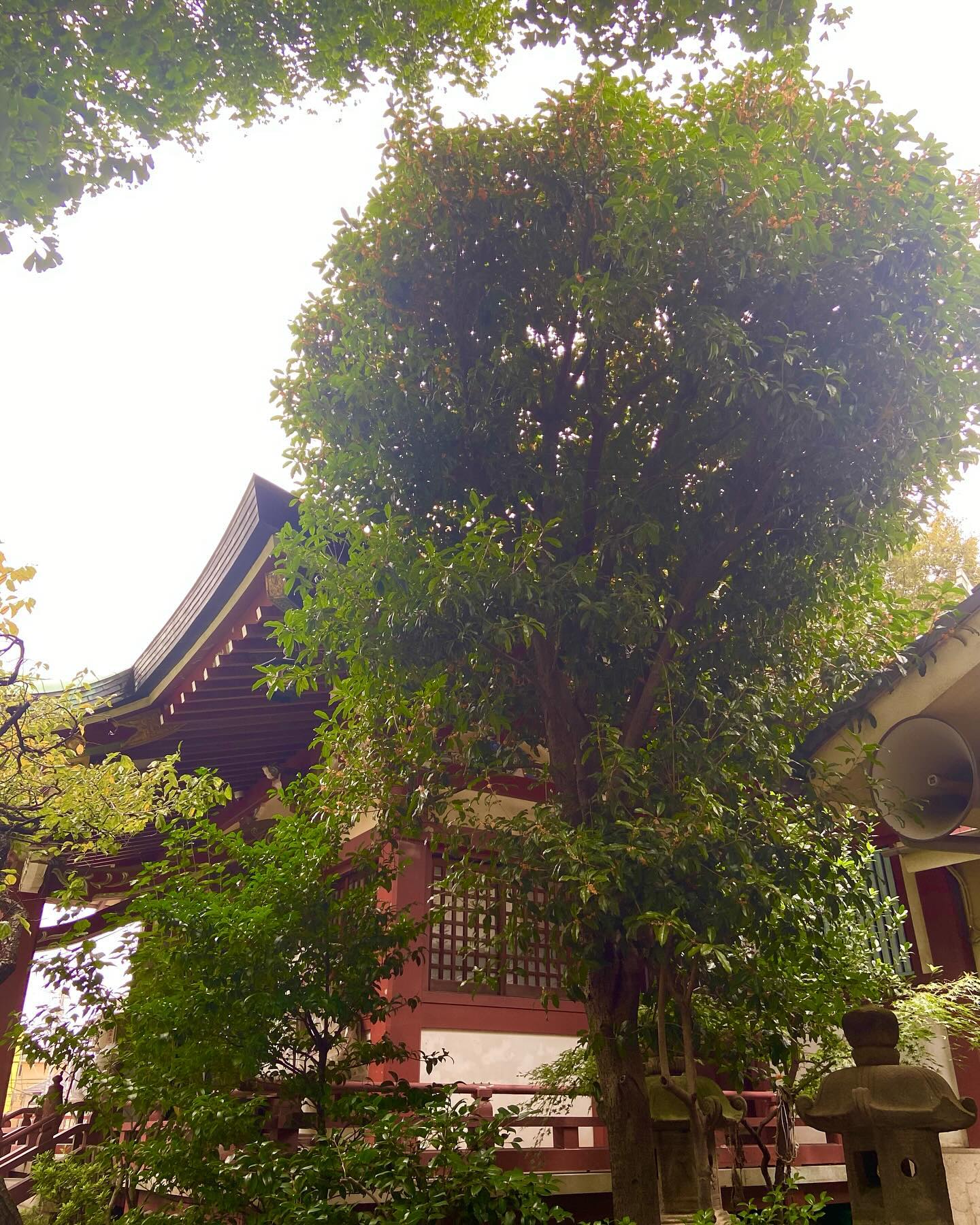 .社殿右側の金木犀が満開ですご朱印をお待ちいただくベンチの上ですこの時季だけの香りのおもてなしです#千住本氷川神社#神社#神社巡り#神社仏閣#北千住#金木犀#キンモクセイ#厄除#ご朱印帳#花かんむり#..