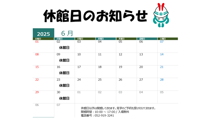 6月の#ネックス・プラザ休館日のお知らせです。毎週月曜日が休館日で、それ以外の日は10時から17時まで開館しております。お間違えのないようにお越しください。ネックス・プラザの情報はこちらhttps:/..