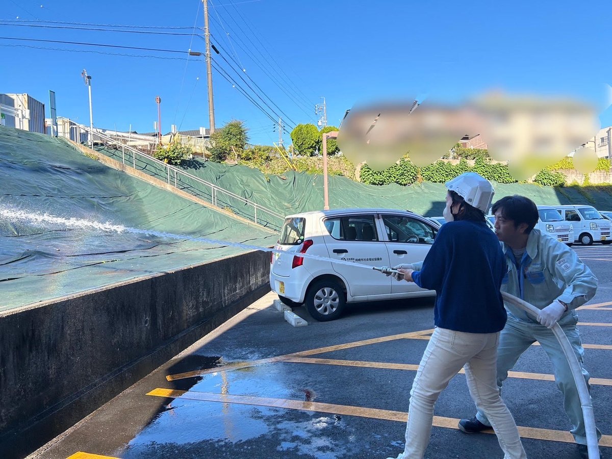 避難訓練に参加しました。ヘルパー事業所の管理者の放水体験の様子です。きれいな虹ができていて、ほっこりしましたが、いざという時は迅速に対応できるよう取り組んでいきたいと思います。登録ヘルパーさん募集しています。