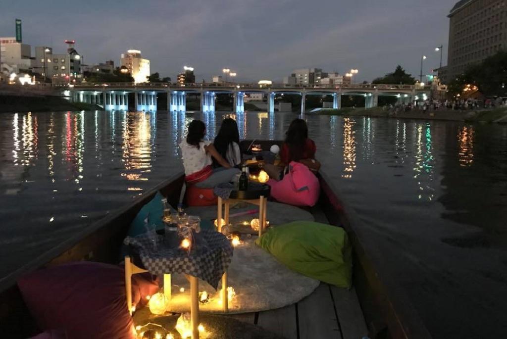 乙川で涼を感じる「ボートグランピング」は9月29日(日)まで!:HPからのご予約は各便の24時間前まで受け付けています。ライトアップされた3つの橋と岡崎城の眺めをお楽しみください!http://dlv..
