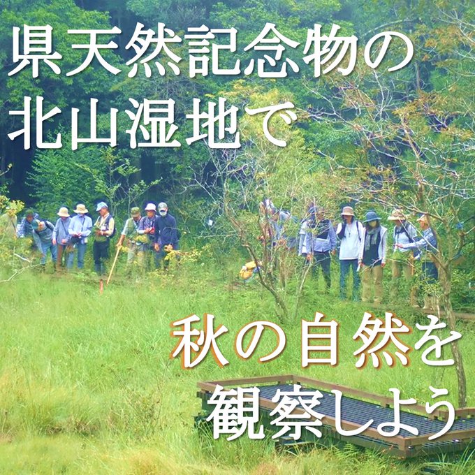 【県天然記念物北山湿地秋の自然観察会】北山湿地では希少な植物・生きものに出会うことができます!北山湿地で秋の自然を散策しながら観察しませんか日時★10/12(土)9時~12時申込期限★9/20(金)必..