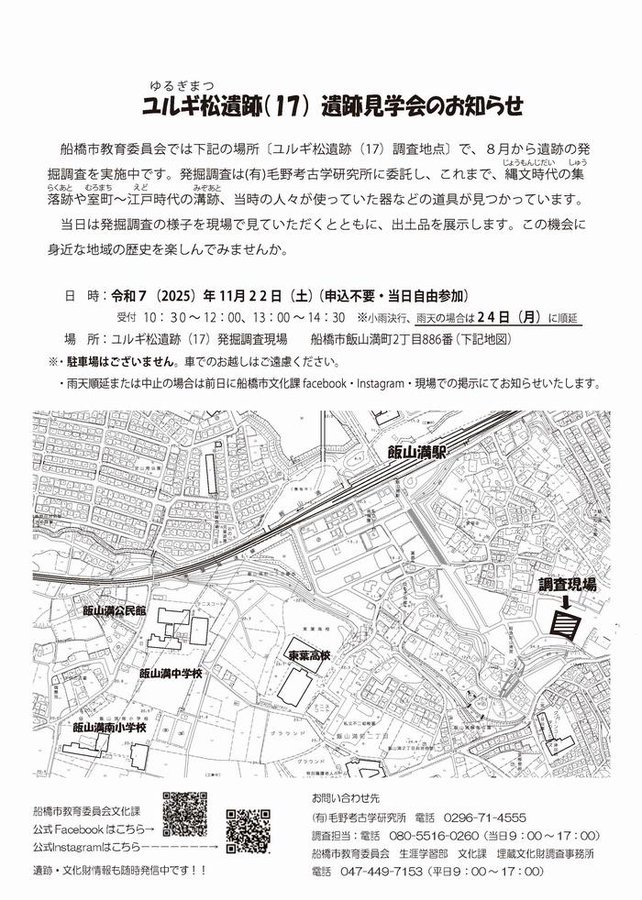 /#遺跡見学会を開催!\日時:11/22(土)10:30~12:00、13:00~14:30(雨天では11/24(月)に順延)場所:ユルギ松遺跡発掘調査現場申込不要・当日自由参加普段は見られない#遺跡..