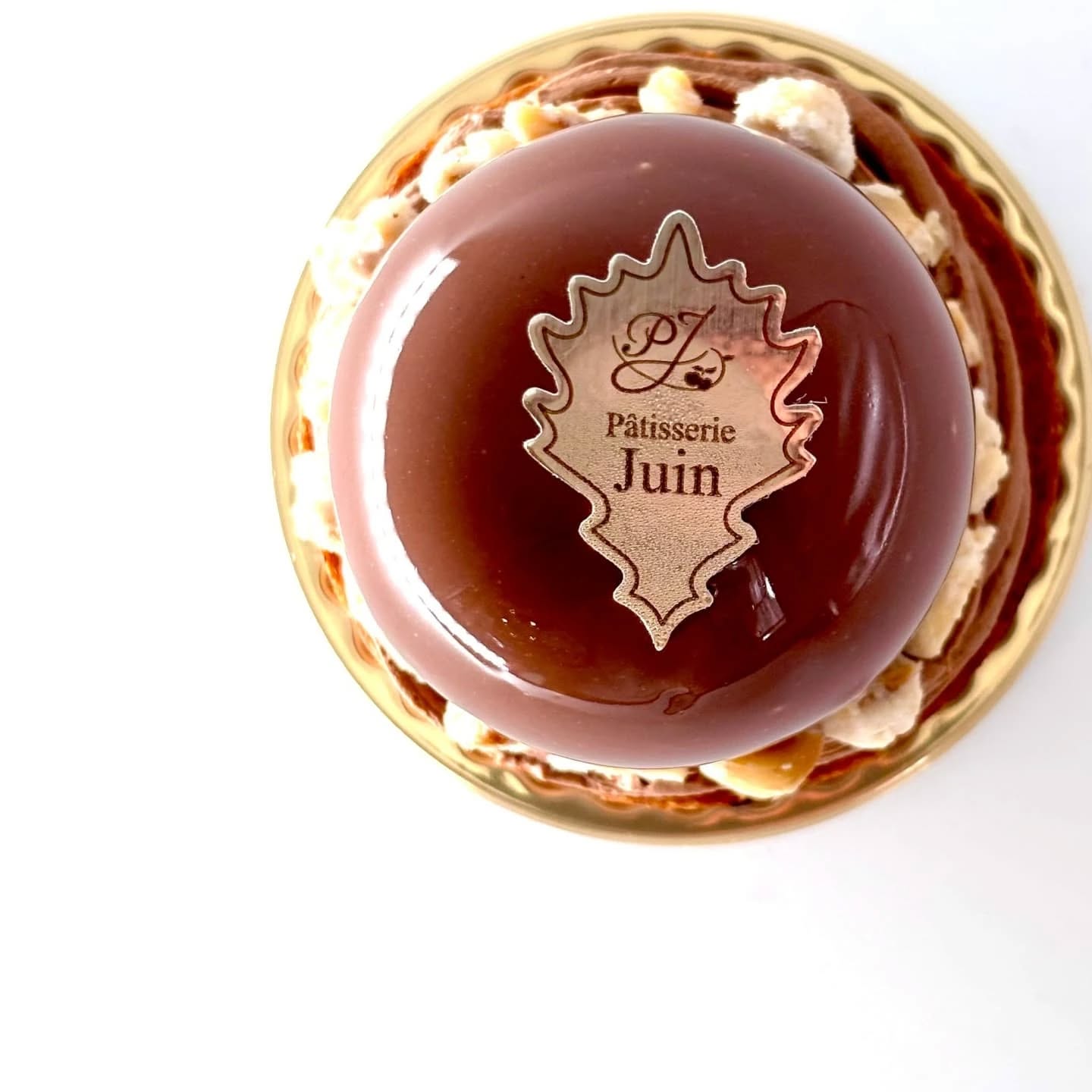 patisserie_juin【セレナーデ】ヘーゼルナッツムースの中にコーヒーのブリュレを忍ばせた球体状のガトーです。土台にはプラリネのタルト、間にはコーヒー風味のガナッシュを絞り周りに糖衣がけした、..