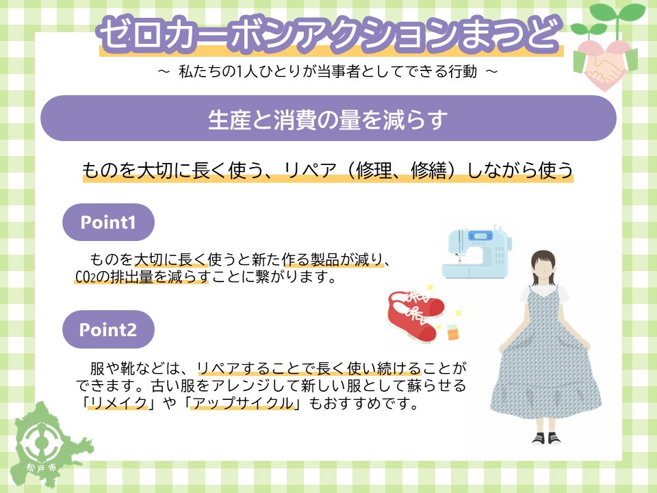 #ゼロカーボンアクションまつど松戸市環境未来会議で市民の方々から提案された取り組みをご紹介-ep.04-◤生産と消費の量を減らす◢〈2〉ものを大切に長く使う、リペア(修理、修繕)しながら使うようにしま..