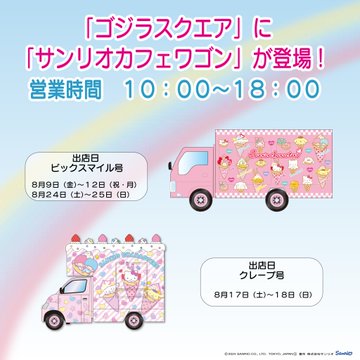 【シナモロールのんびりマルシェ】8/9(金)~8/25(日)場所:3F特設会場シナモロールの期間限定ショップが本日オープンさらにゴジラスクエアには『サンリオカフェワゴン』が登場「焼きドーナツ」や「クレ..